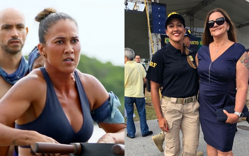 Guza, no 'No Limite', e ao lado da mãe — Foto: Globo/Arquivo pessoal