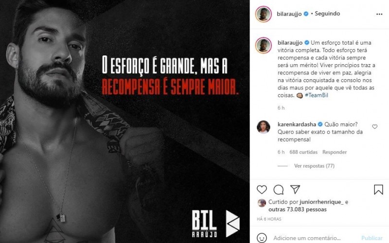 Perfil de Arcrebiano, do 'No Limite', aposta em frases de incentivo — Foto: Reprodução/Instagram