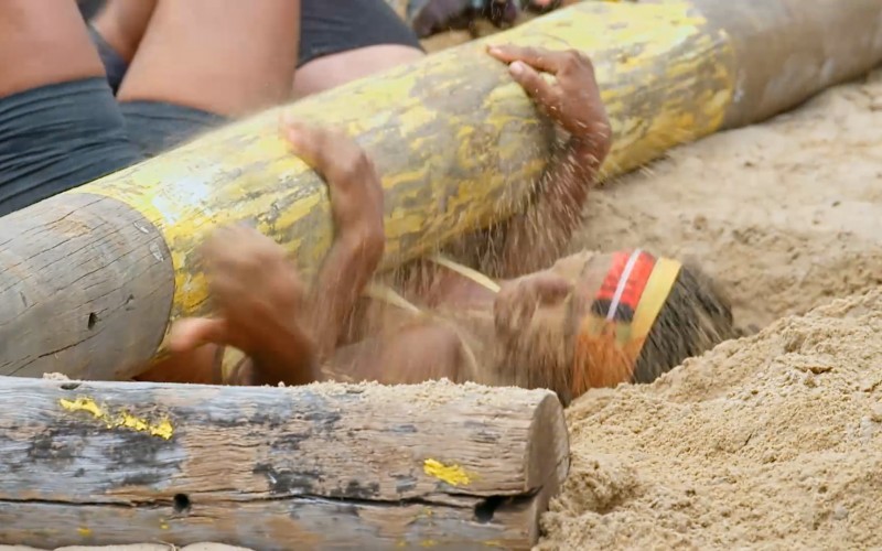 'No Limite': Flávia leva areia na cara durante Prova da Imunidade