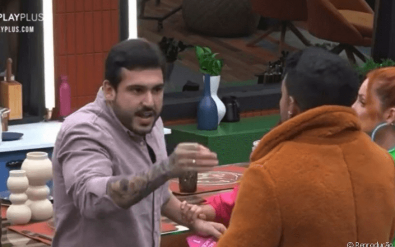 "Eu não tenho medo de você, não", avisou Matheus, encarando o adversário. "Muito menos eu de você, caral**. Eu estou de boa", respondeu João.